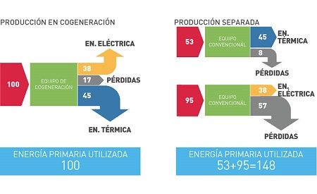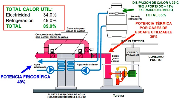 Se trata pues del aprovechamiento del calor residual de la generación eléctrica para producir calor, frío y electricidad mediante un sencillo sistema integrado a partir de un mismo combustible.